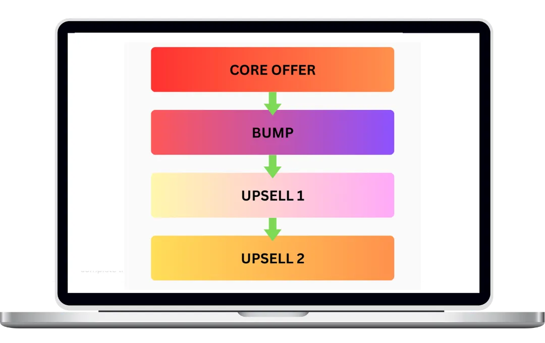 The Low Ticket Funnel Flow gives you 3 high converting offers and a bump, so you know exactly what to sell to get more high ticket buyers - you could literally have it in 30-60 mins.